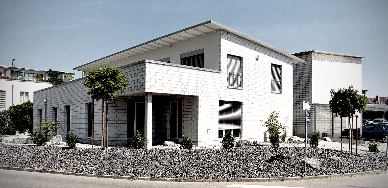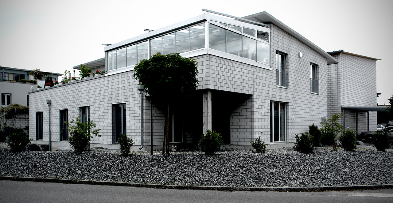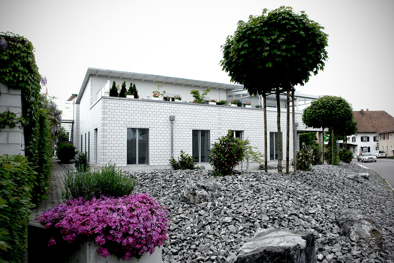 Dieser Neubau in Uettligen bei Bern beinhaltet eine Arztpraxis im Erdgeschoss und eine Eigentumswohnung im Obergeschoss. Die Praxis entspricht zum Einen den hohen Anforderungen an Raumnutzung und Infrastruktur, zum Andern den Ansprüchen an ein modernes und helles Erscheinungsbild.