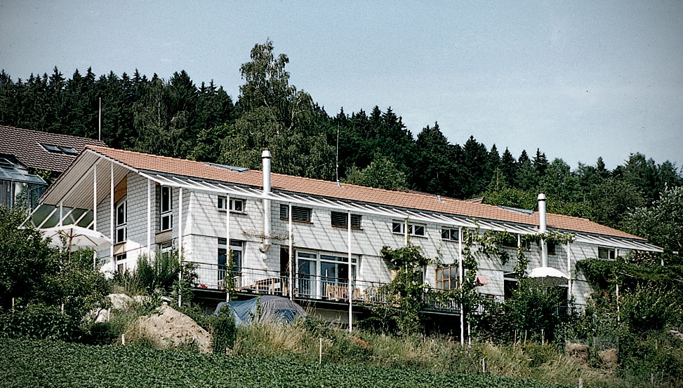 Diese Mehrfmilienhaus in Hanglage wurde so geplant und realisert, dass es sich optimal in die Umgebung des Frienisbergs einfügt.