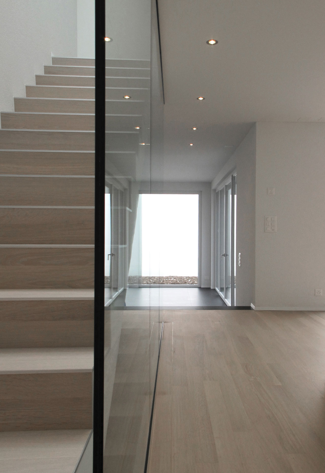 Das Einfamilienhaus in Kleinbösingen fällt durch seine klaren Formen auf. Das Gebäude ist so an das bestehende Terrain angepasst, dass es trotz einer äusserst grosszügigen Wohnflächen zurückhaltend wirkt. Dort wo gewünscht, bringen grosse Fenster Helligkeit und Ausblick, die dank der Ausrichtung die nötige Privatsphäre wahren.